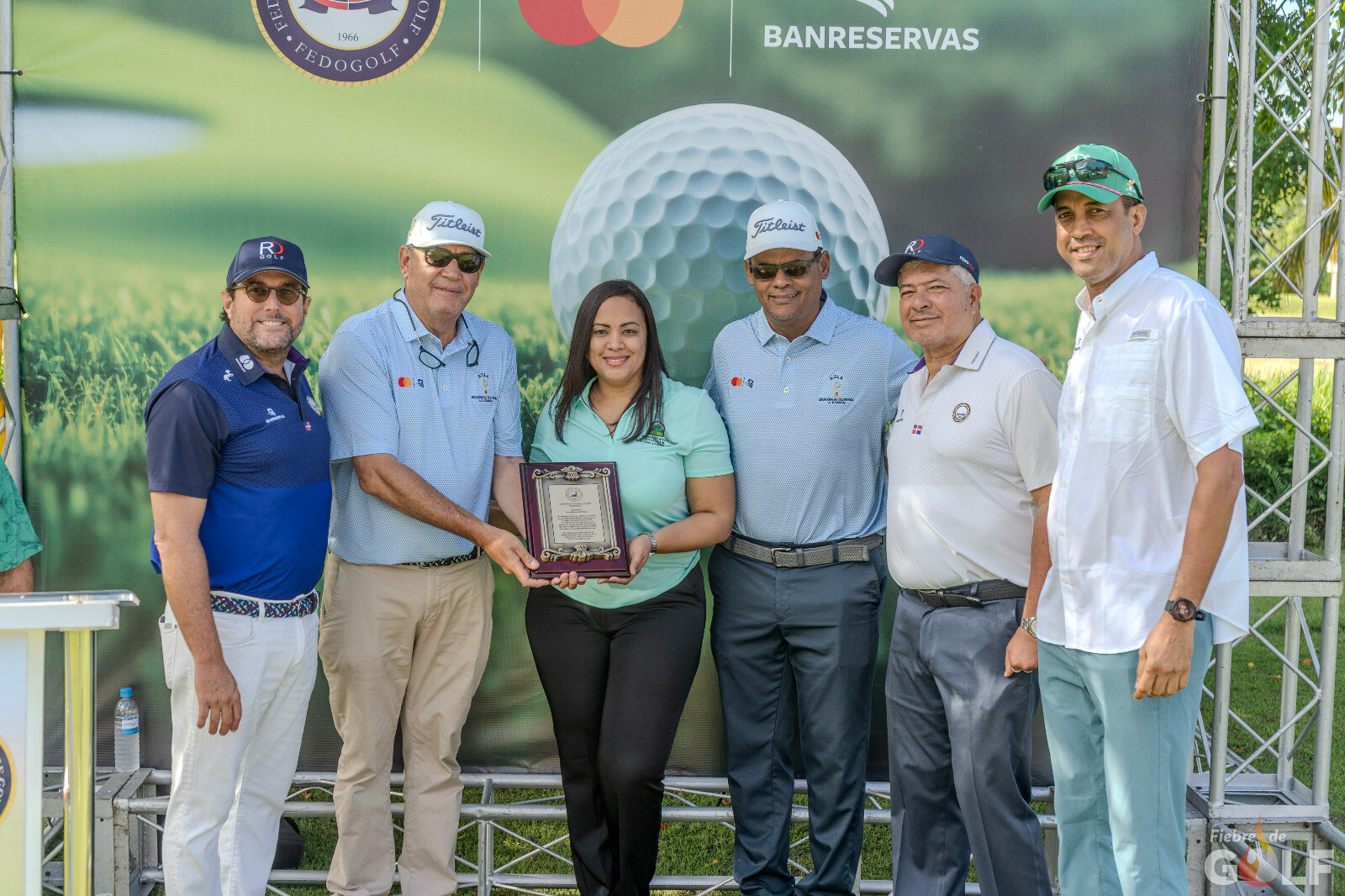 Previo al inicio de competencias, Enrique Valverde, presidente de Fedogolf, entregó una placa de reconocimiento a Punta Blanca Golf Course, recibido por el señor Antonio Ramis, director general del Grupo Punta Blanca y por su director de golf, Tomás Mercedes.
