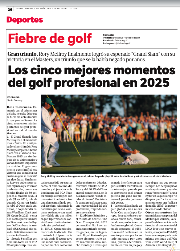 Hola Fiebruses. Cerrando casi el primer mes del año, no quise dejar que se fuera sin antes traerles lo que para mí fueron los cinco momentos más importantes del golf profesional en todo el mundo. Veamos: